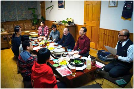 前年度よりさらに参加人数は少なめですが、すき焼き、塩鍋の2種類の鍋を囲み、